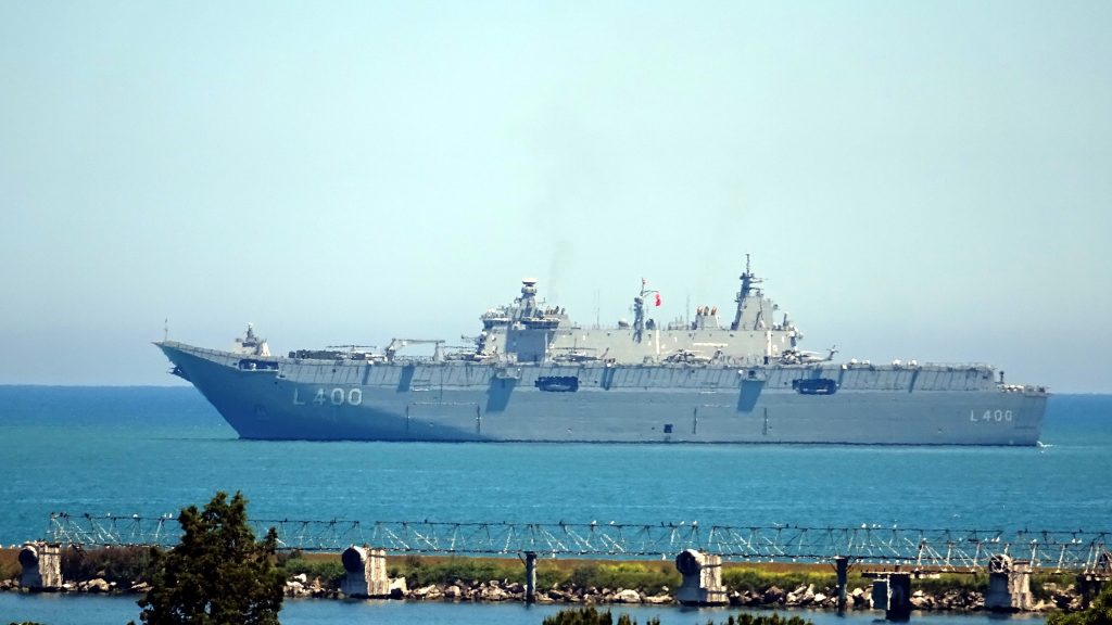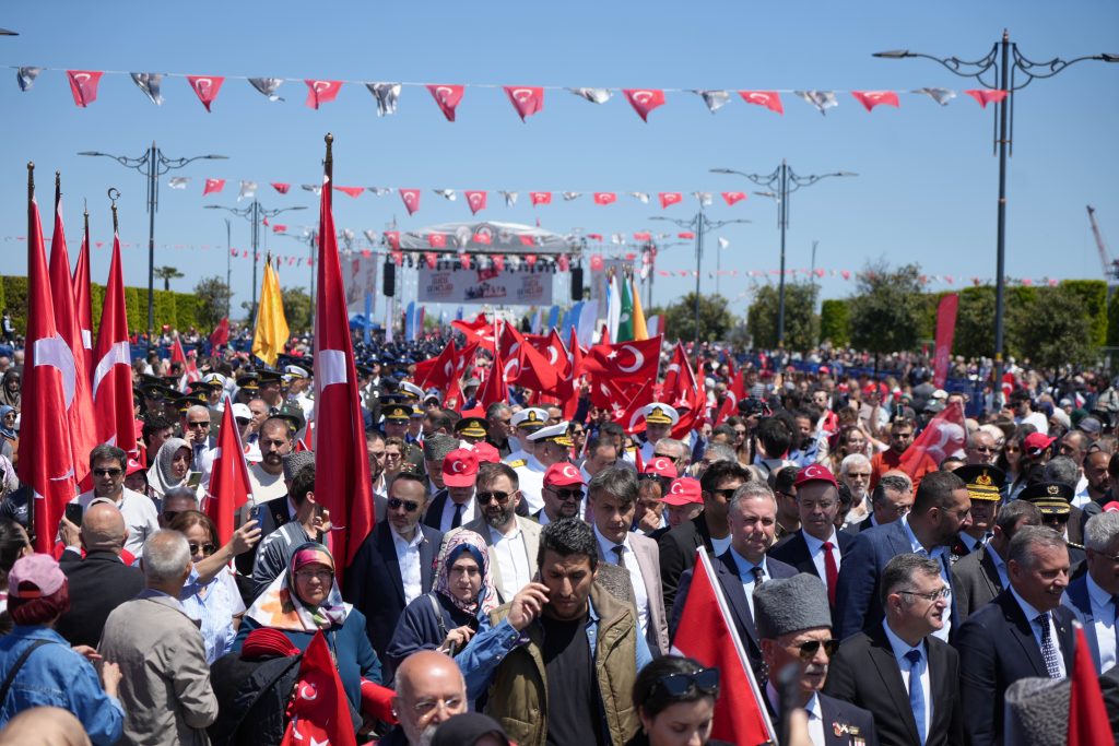 Kutlamalara damgasını vuran anlardan biri de TCG Anadolu Gemisi’nin Samsun’a ilk gelişiydi. Tören alanının karşısında liman açığına demirleyen TCG Anadolu, gövde gösterisi yaptı. Vatandaşlar gemiyi ellerinde Türk bayraklarıyla selamladı.