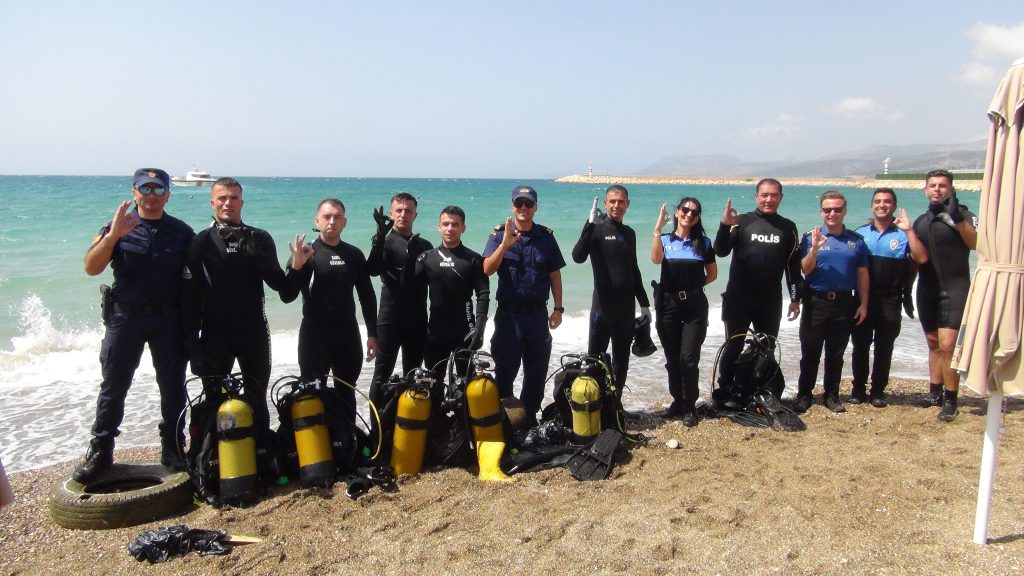 Silifke Sahil Güvenlik Karakol Komutanlığınca Taşucu Mahallesi’nde çevre duyarlılığına dikkat çekilen bir etkinlik düzenlendi. Sahil Güvenlik Akdeniz Bölge Komutanlığına bağlı DEGAK Özel Timi 09 Komutanlığı ile İl Emniyet Müdürlüğü Su Altı Grup Amirliği’ne bağlı dalgıçlar, deniz altında temizlik çalışması yaptı. Deniz dibinden yasa dışı su ürünleri avcılığı esnasında balık avlama gemileri tarafından denize bırakılan malzemeler, araç lastiği, cam şişeler, plastik, tüp gaz gibi çeşitli atık malzemeler çıktı. Dalgıçlar su altında temizlik yaparken, öğrenciler de sahildeki atıkları topladı. Öğrencilere, İlçe Kaymakamı Abdullah Aslaner ile ilçe protokolü de eşlik etti.