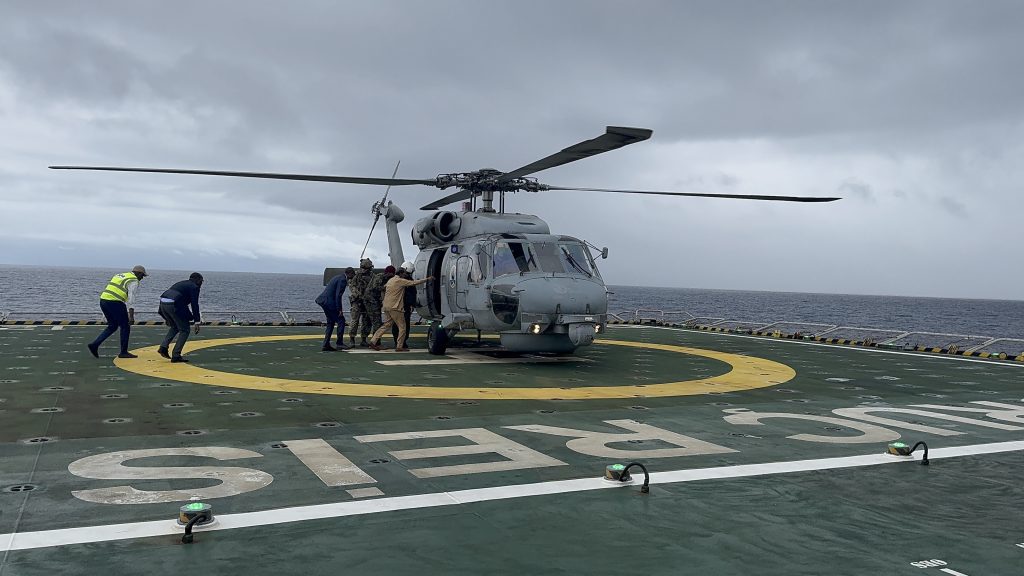 “Somali Cumhurbaşkanı Hassan Sheikh Mohammud ve beraberindeki heyet, Oruç Reis araştırma gemimize inceleme ziyaretinde bulundu. Gemimize faaliyetleri esnasında TCG GÖKSU ve TCG GİRESUN fırkateynlerimiz refakat ve koruma görevi icra ediyor.”
