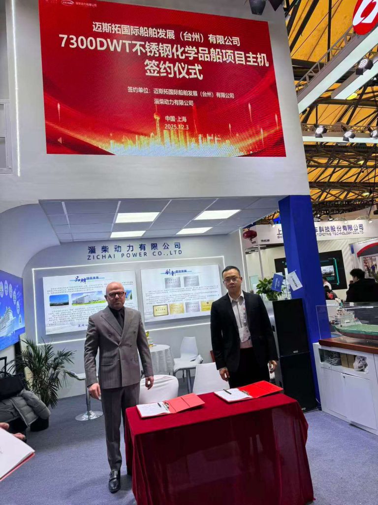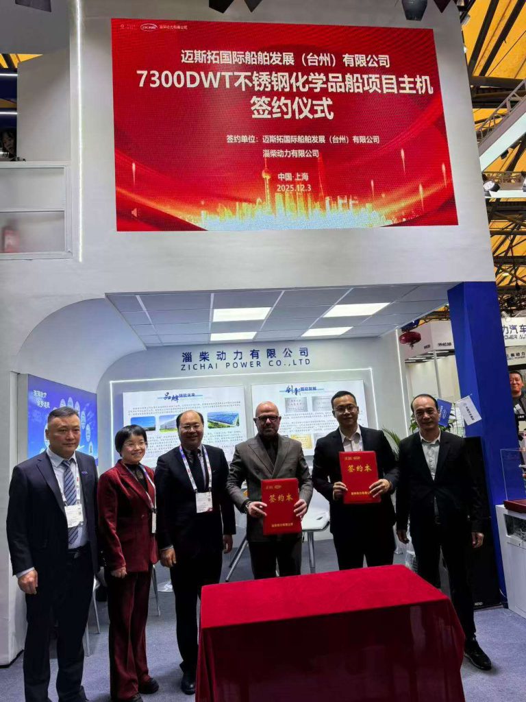 3 Aralık 2025 tarihinde, Şanghay Denizcilik Fuarı’nın ikinci gününde, W4 salonunda bulunan Zichai Power standında, proje kapsamında kullanılacak ana makine ve jeneratör sistemlerine ilişkin imza töreni Milestone International Shipbuilding ve Zichai Power Co. Ltd. arasında gerçekleştirildi.